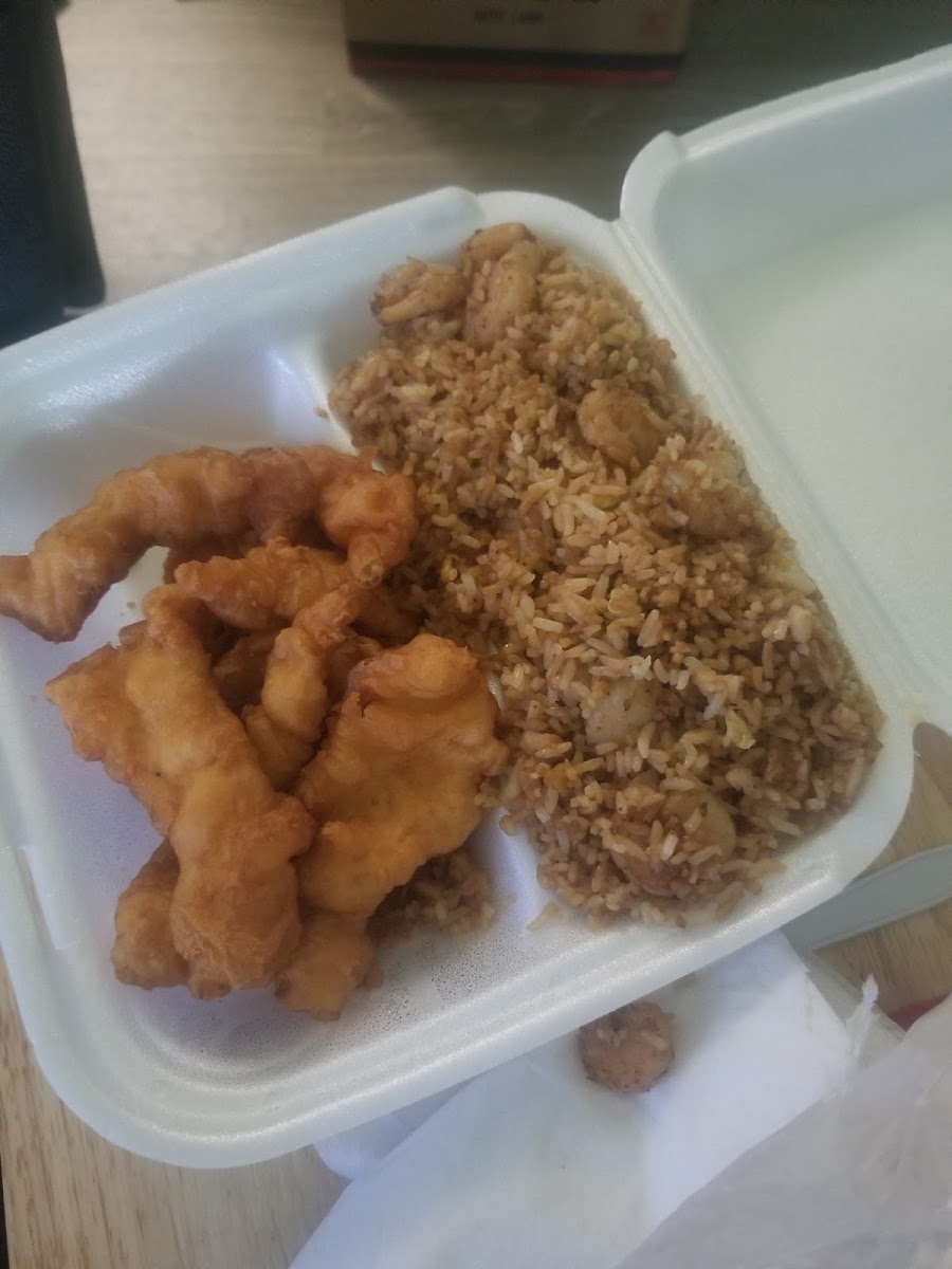 Sweet Sour Chicken and Shrimp Fried Rice